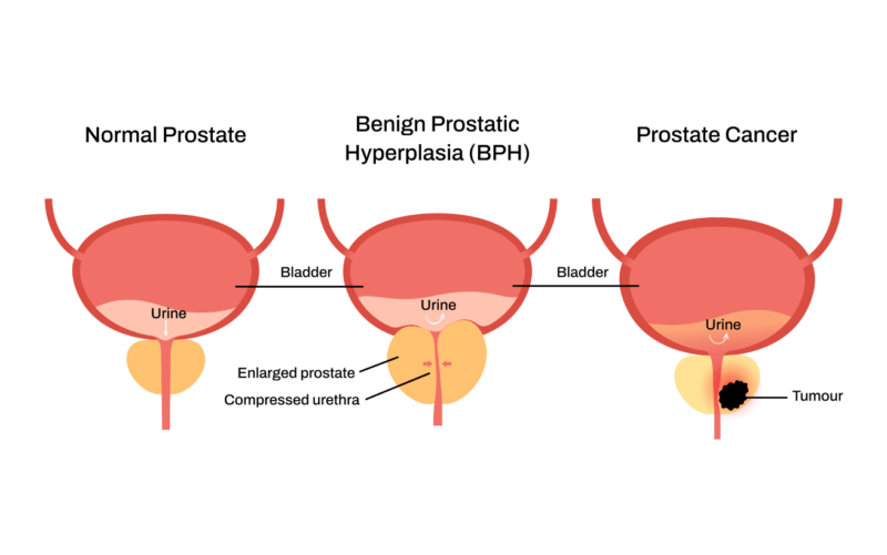 As the prostate enlarges, it can press against the urethra and bladder outlet, leading to symptoms such as slow flow, urgency, frequent nighttime urination, or difficulty starting. BPH is not cancer, but the symptoms can overlap, which is why evaluation is helpful when changes occur.